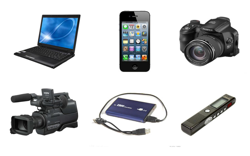 手機、筆記本、數碼相機、攝像機、移動硬盤、錄音筆等電子產品。