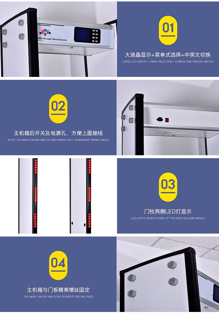 看門神 KMS-600M安檢門(22區)采用電磁兼容設計和抗震動設計,具有高靈敏度、強抗干擾能力和強抗震能力,適用于管制刀具和槍支等危險物品的安全檢查,廣泛應用于監獄、法院、學校、醫院、電子企業、港口、客運站、展覽會館、會議中心、重大慶典、演唱會等重要場所。