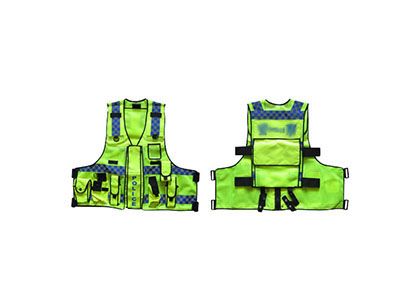 反光背心縫制精細(xì),外觀整潔,色彩艷麗,質(zhì)地柔軟,穿著舒適;品種規(guī)格齊全;具有反光強(qiáng)度大,安全性好,耐穿,色牢度好等特點(diǎn),在執(zhí)行公務(wù)時(shí)能很好的起到導(dǎo)向、警示、安全性等作用,是警務(wù)人員所需的多功能警示裝備。