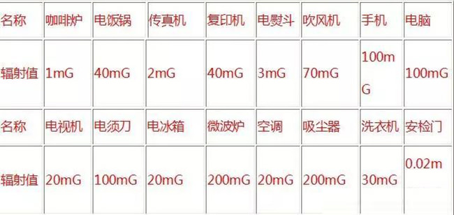 任何電子產(chǎn)品都有一定的電磁輻射。我們的周圍也存在著非常多的電磁輻射。比如電臺,電視臺,手機塔,高壓線,電腦,電視,微波爐,電磁爐,手機等等。上表不難看出,和其他的電子設(shè)備一樣,安檢門在使用時也會產(chǎn)生輻射,但是相對這些電子產(chǎn)品來說,安檢門的電磁輻射微乎其微。
