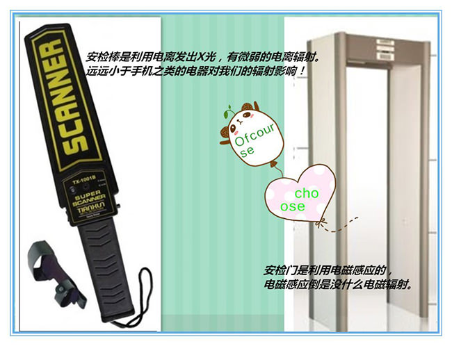 通常,弱磁場我們可以忽略,因為弱磁場就相當(dāng)我們在地磁中間的效果,地球磁場一直存在,但對我們并無太大影響.但是強的電磁場對人體的影響就不能忽略了,一般國家規(guī)定,電器磁場在30UT以內(nèi),對人體的影響可以忽略,一般安檢門在工作時候,其磁場強度不會超過10UT,可以說是完全安全的.但是有些安檢門廠家因為制造技術(shù)的緣故,在低功率下不能達到探測要求,就開始加大功率,拓展頻率,這時安檢門的輻射就比較難保證在正常水平,不過即使這樣,安檢門對人的影響,也遠遠小于手機之類的電器對我們的輻射影響,主要是因為安檢門發(fā)射的電磁場主要為6.8~8KHZ之間的磁場,一般磁場在MHZ以下對人體的危害是很小的.所以可以說,通過安檢門不會對孕婦產(chǎn)生大的影響,即使每天通過上百次,一個星期所受到的輻射,也只相當(dāng)用手機打了個電話。