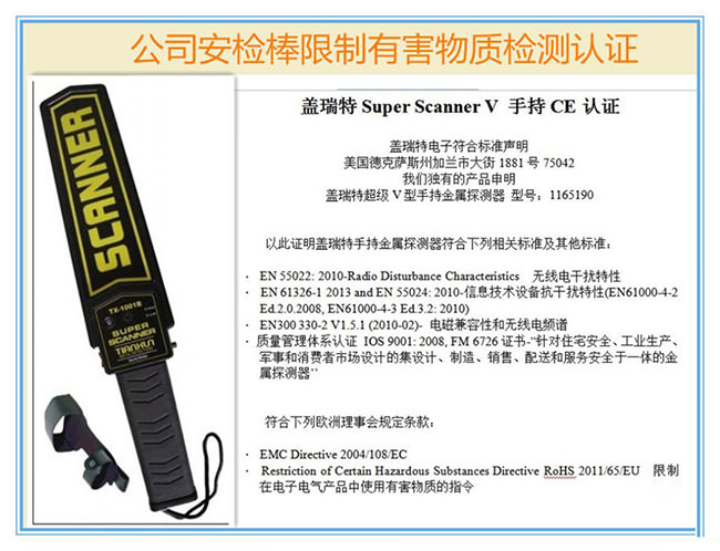 六、公司使用手持金屬探測器物質(zhì)檢測認證: